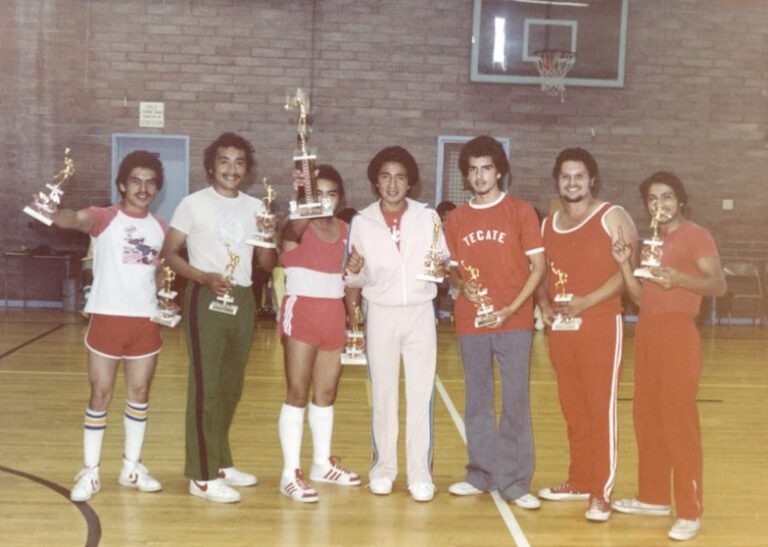The La Raza Athletic Association (LRAA) league was born from a game of five-on-five among Cal students from Casa Juaquin Murrieta/Chicano Student Co-op and friends from East Oakland. The league was formally established in East Oakland in the fall of 1971. The need for an athletic league for Raza (Latinos) by Raza began to take shape. The birthplace was an old gym at one of the first alternative schools in the nation, “Casa De La Raza School.”